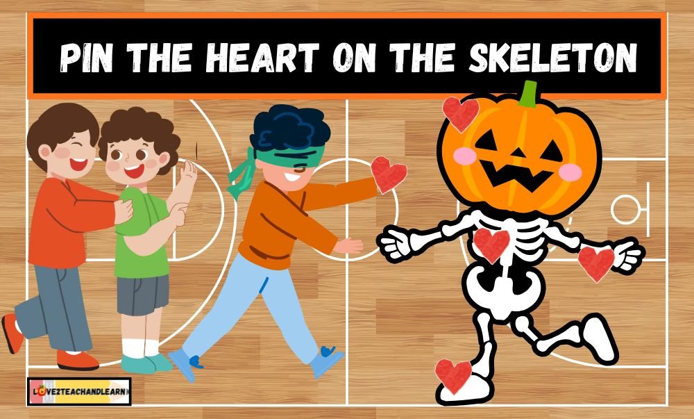 HOW TO PLAY: Each students should put on the blindfold, have their classmates spin them around a few times, then walk forward and pin (or tape) a red heart on the skeleton. The student who gets the closest to where the skeleton’s heart would actually be – WINS.