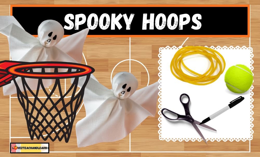 HOW TO PLAY: Instead of basketballs, students have fun throwing the ghosts into the basketball hoop.