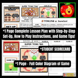 I like to play this game with my PE students as a culmination to my bowling unit, and after I’ve taught overhand throwing, leading up to the Super Bowl in early February.