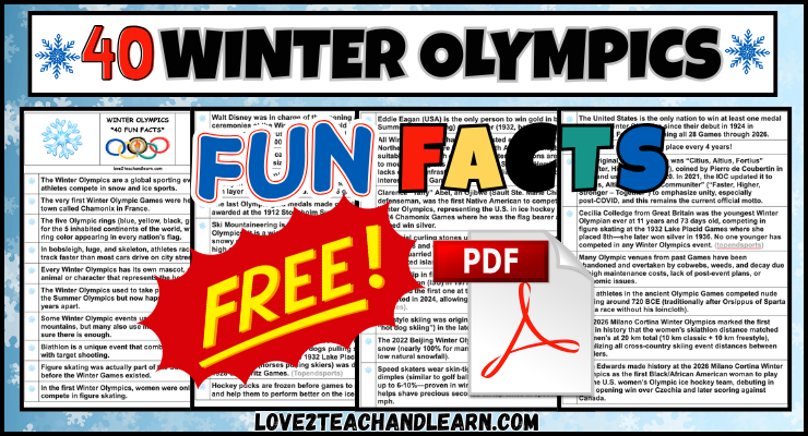 In this post love2teachandlearn (Mrs. T.) will share 40 awesome facts related to these amazing winter games.